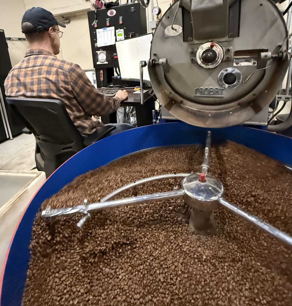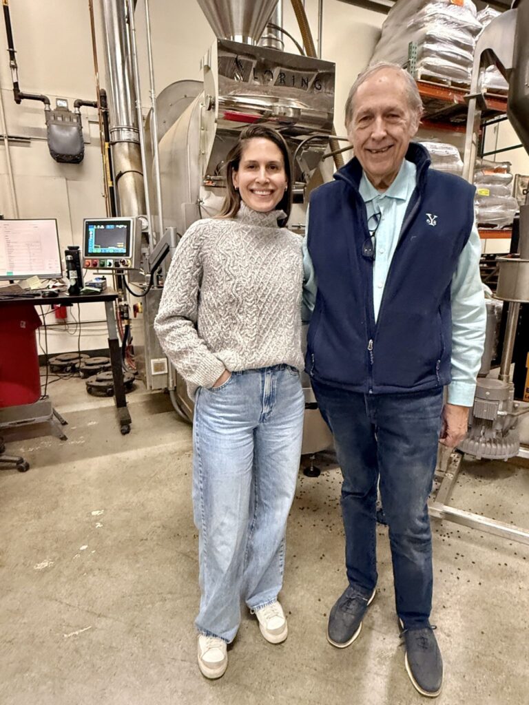 “When coffee comes in through a port in New Jersey, it comes in a green bean form,” explains coffee buyer Jenny Howell, who joined her father in the business and has lived in Acton with her husband since 2015. “From the port, it will go straight to an off-site freezer, and that’s where it’s stored until we want to roast it.”