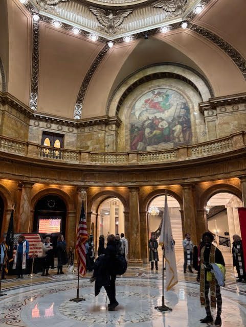 “I was absolutely impressed with the way this event was organized and implemented. The fact that they could get this together so quickly and have it be so smooth was extremely impressive to me. As Brother Will told us at breakfast, when he is doing his holy work, he is barefoot. He walked barefoot in subzero temperatures to the State House to pray with us.